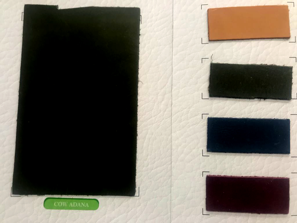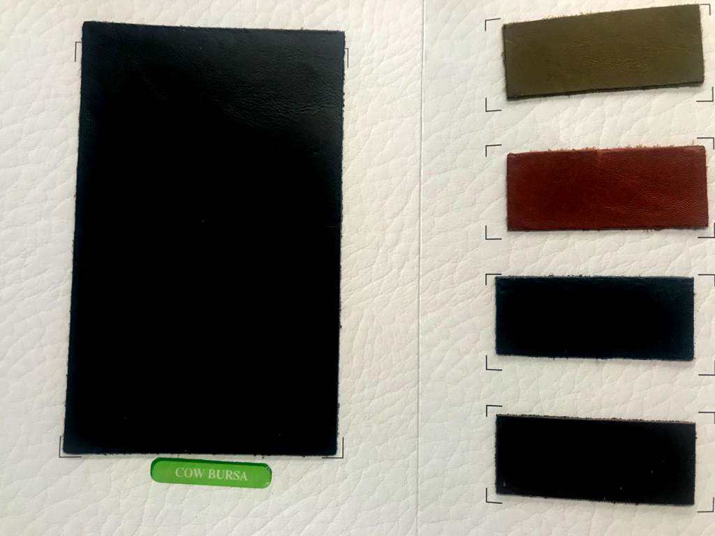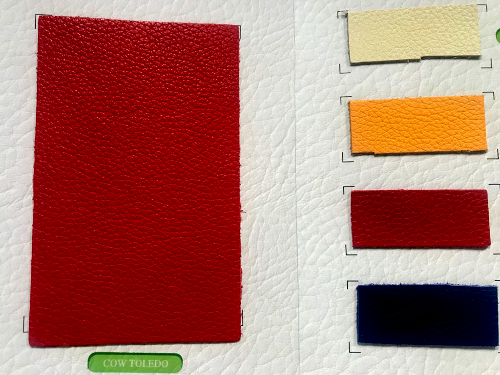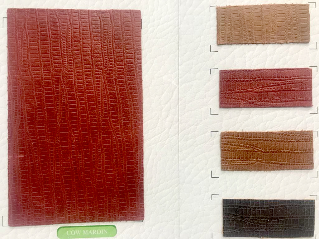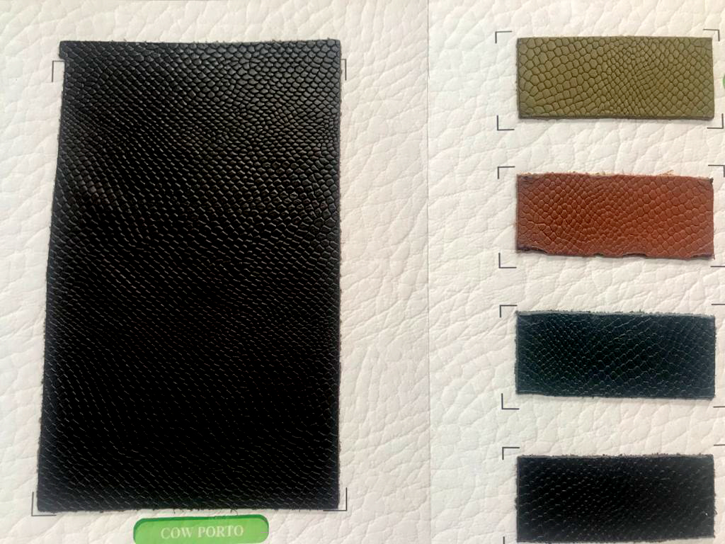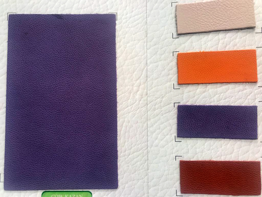 A hide or a skin from an animal with an intact original fibrous structure, tanned with a surface coating that is less than 0.15 mm thick.