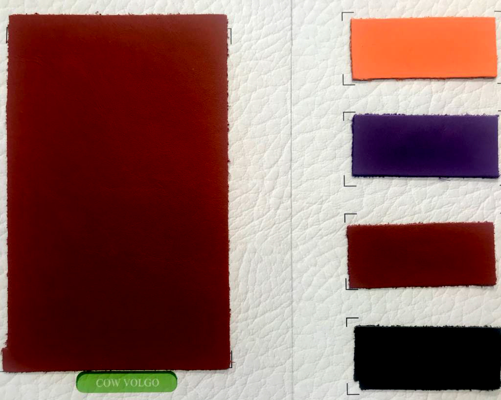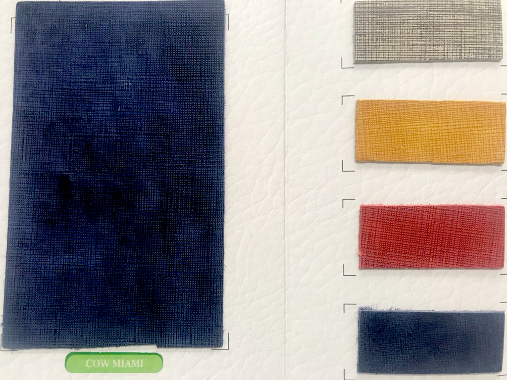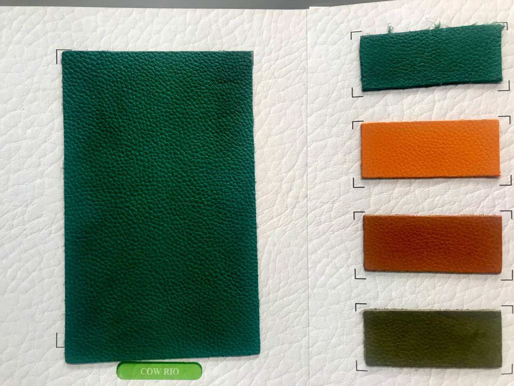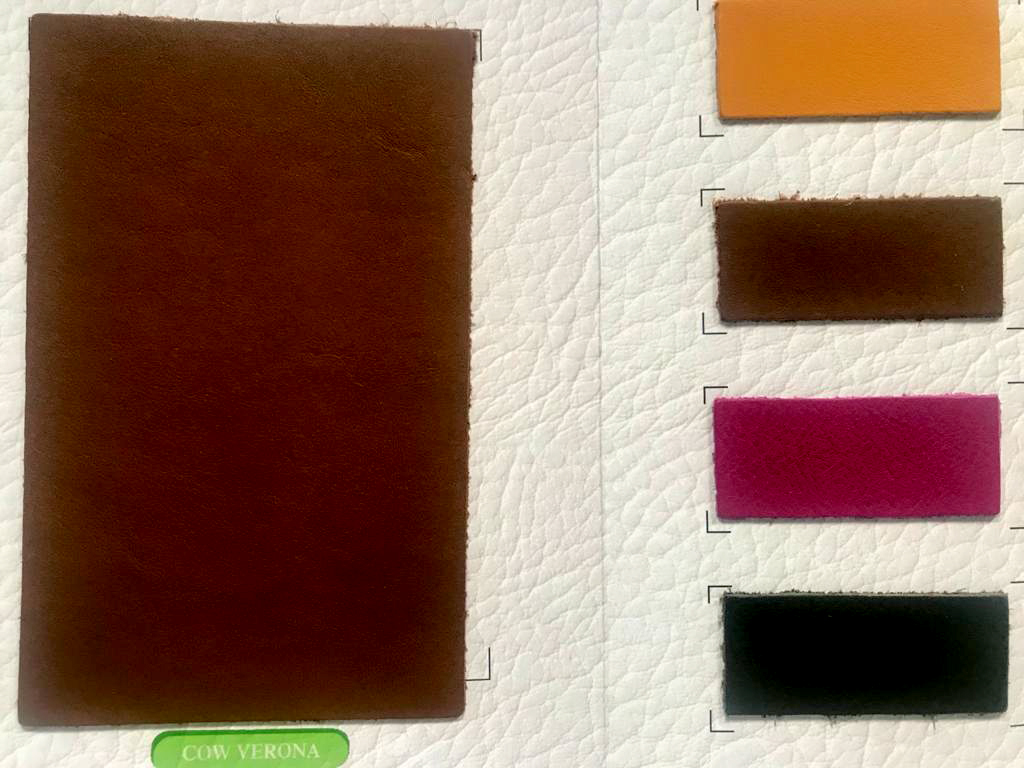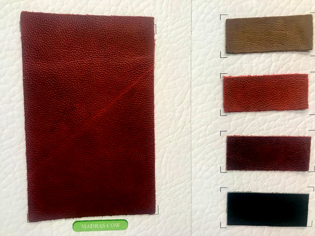 A hide or a skin from an animal with an intact original fibrous structure, tanned with a surface coating that is less than 0.15 mm thick.